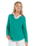 - Triple-needle coverstitched miter V-neck and armholes